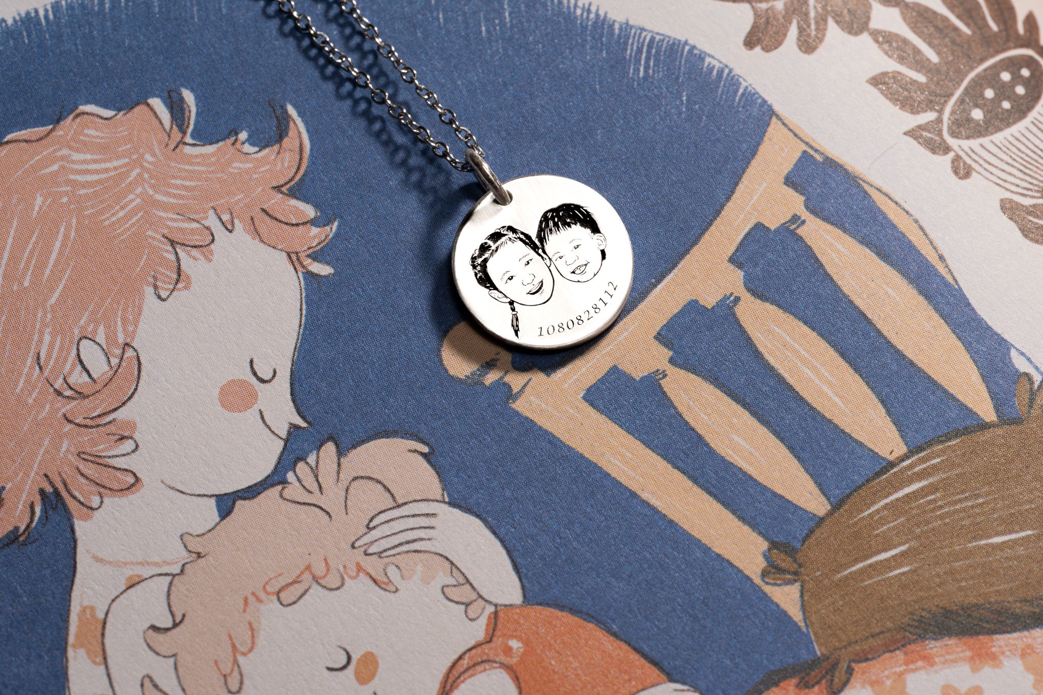 【純銀圓牌紀念項鍊】經典圓牌純銀紀念項鍊|手繪肖像與專屬刻字