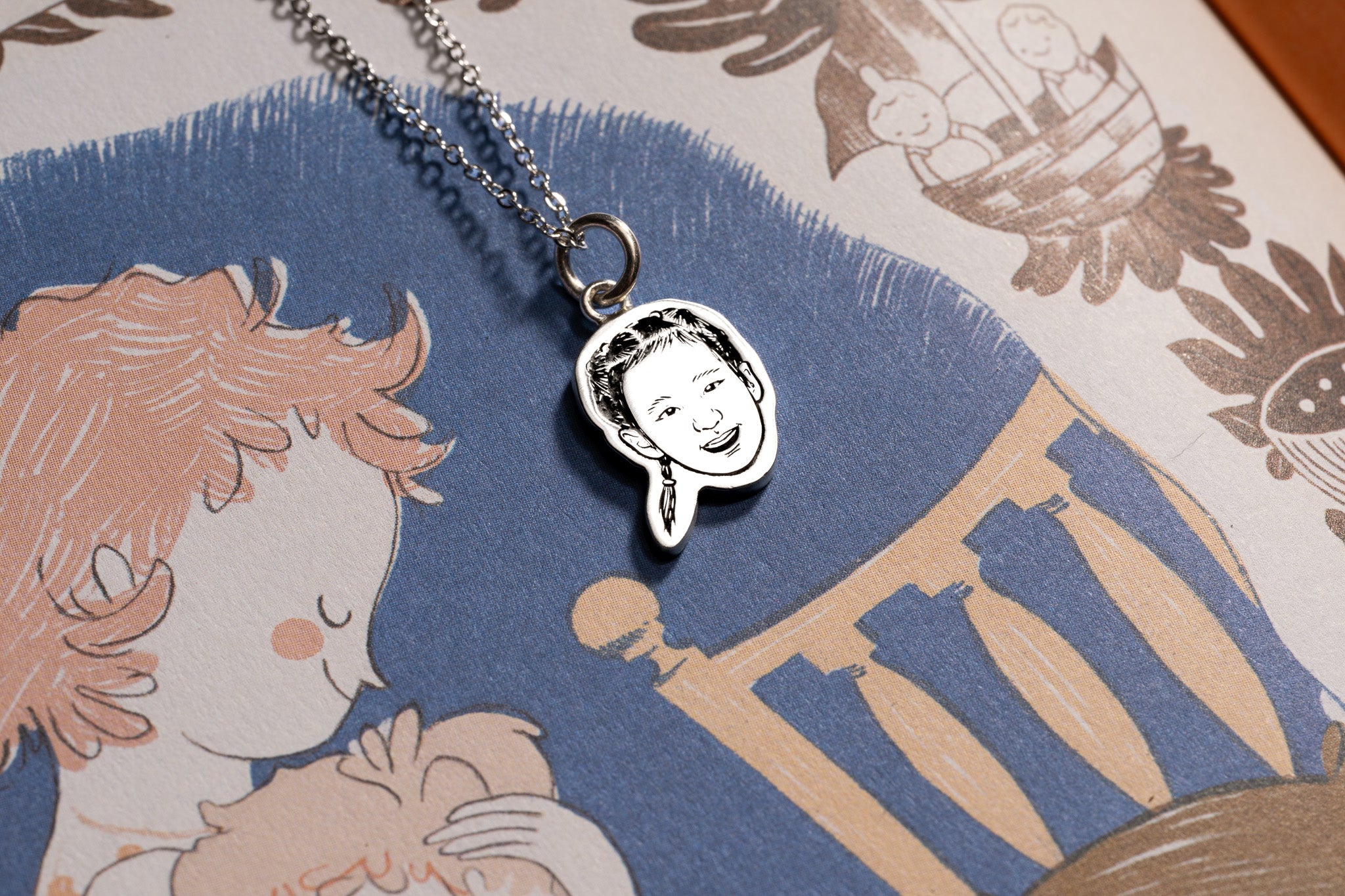 【純銀單頭像造型紀念項鍊】客製化單頭像純銀項鍊|獨一無二的個人/寵物肖像訂製