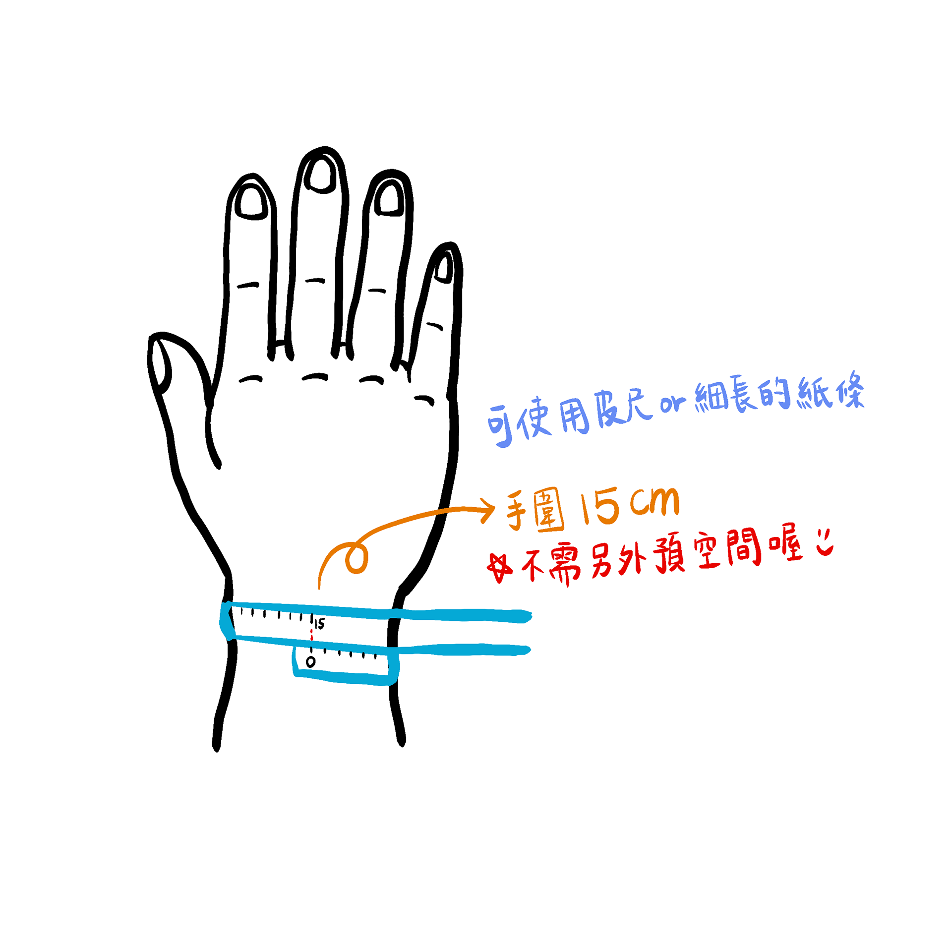 (成人手圍16以上需客製調整,成人手圍量測時不能留空隙)